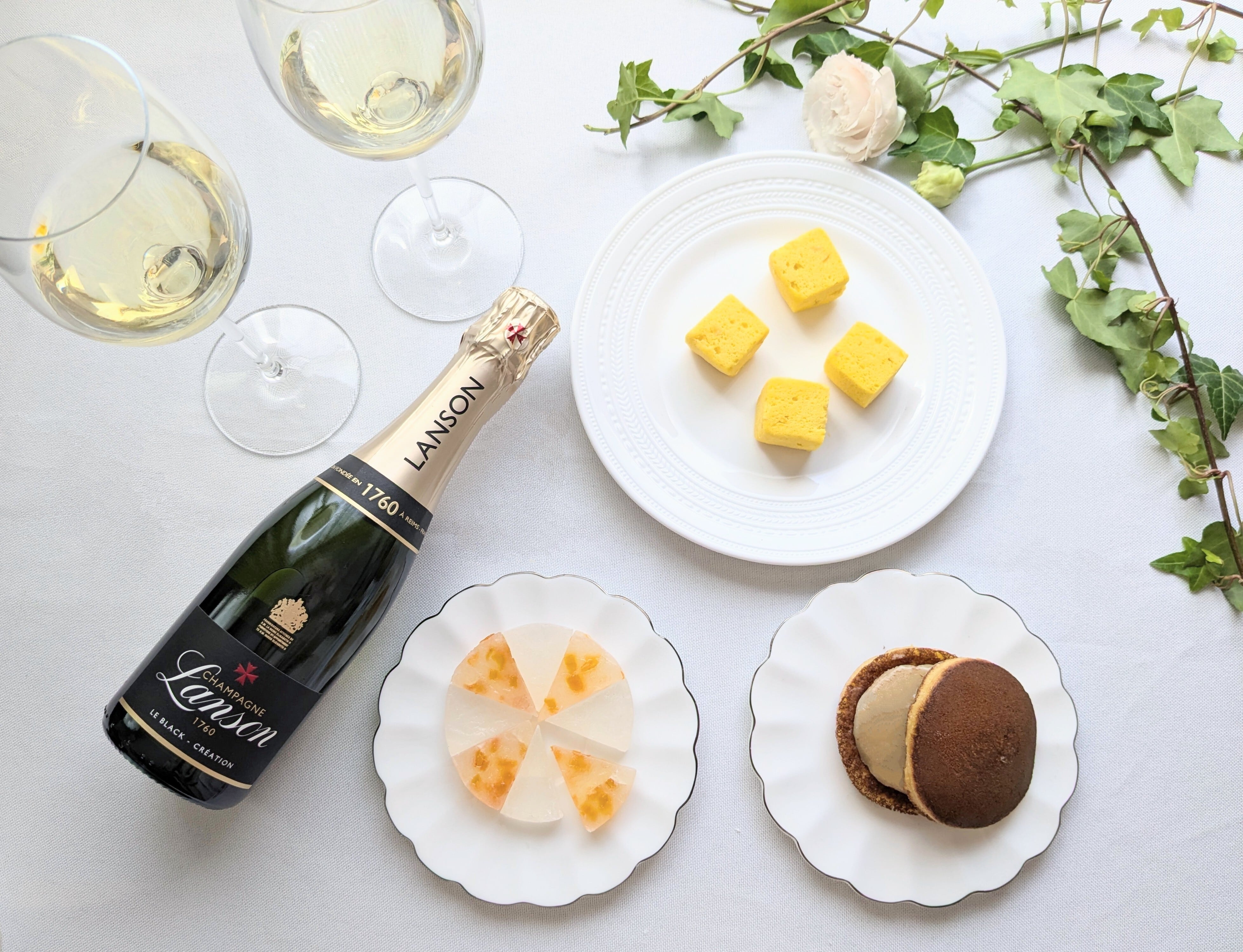 イギリス王室御用達であり、ウィンブルドン公式シャンパンであるランソンシャンパン。こちらの繊細な泡と、そのシャンパンのための特製和菓子とが溶け合う瞬間を是非、お楽しみください。