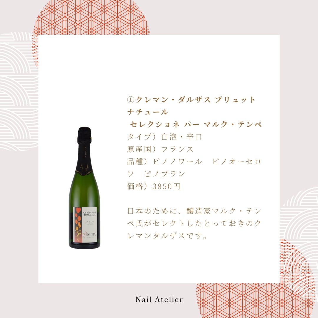 ①クレマン・ダルザス ブリュット ナチュール セレクショネ パー マルク・テンペ